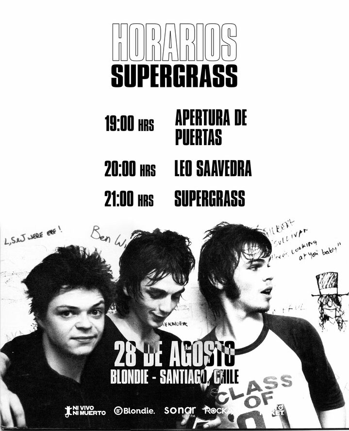 Este jueves arribará por primera vez a Chile la banda británica Supergrass, quienes se presentarán en Centro de Eventos Blondie. La banda se unirá al ciclo aniversario número 32 del histórico recinto, y donde además celebrarán el aniversario número 30 de su disco debut I Should Coco.