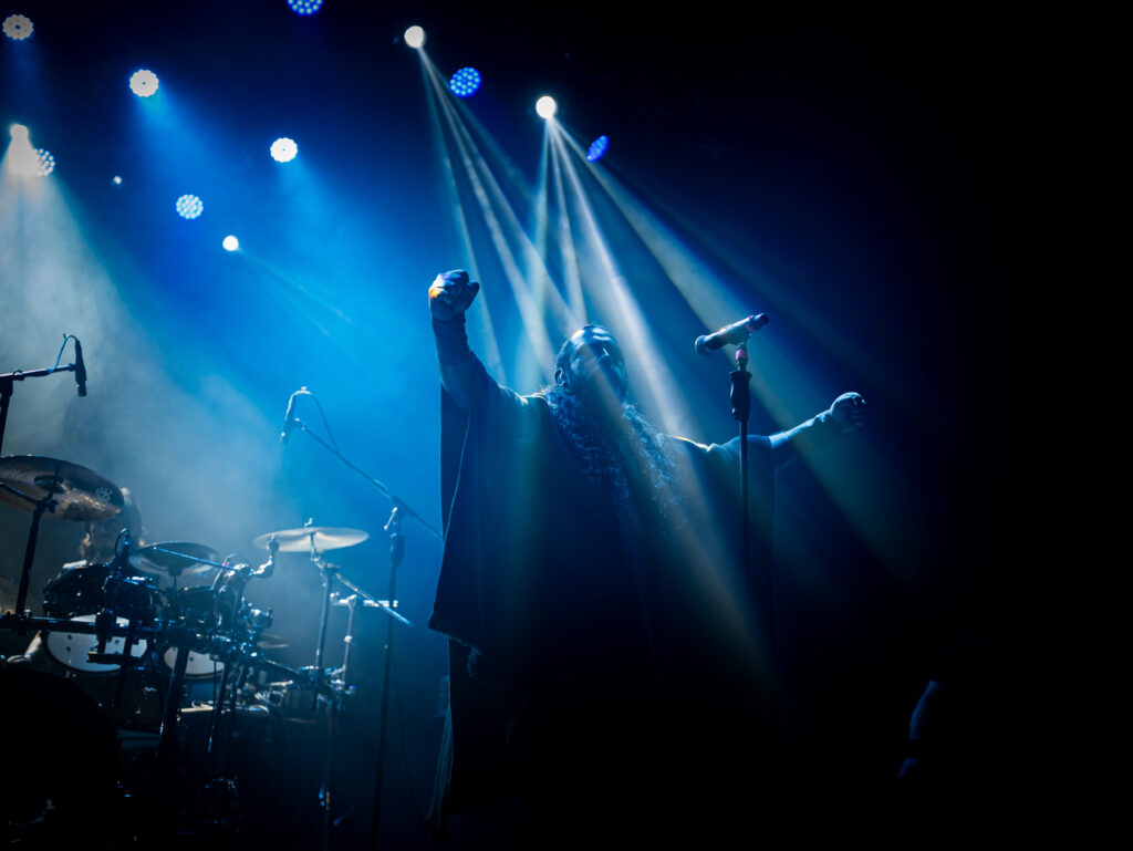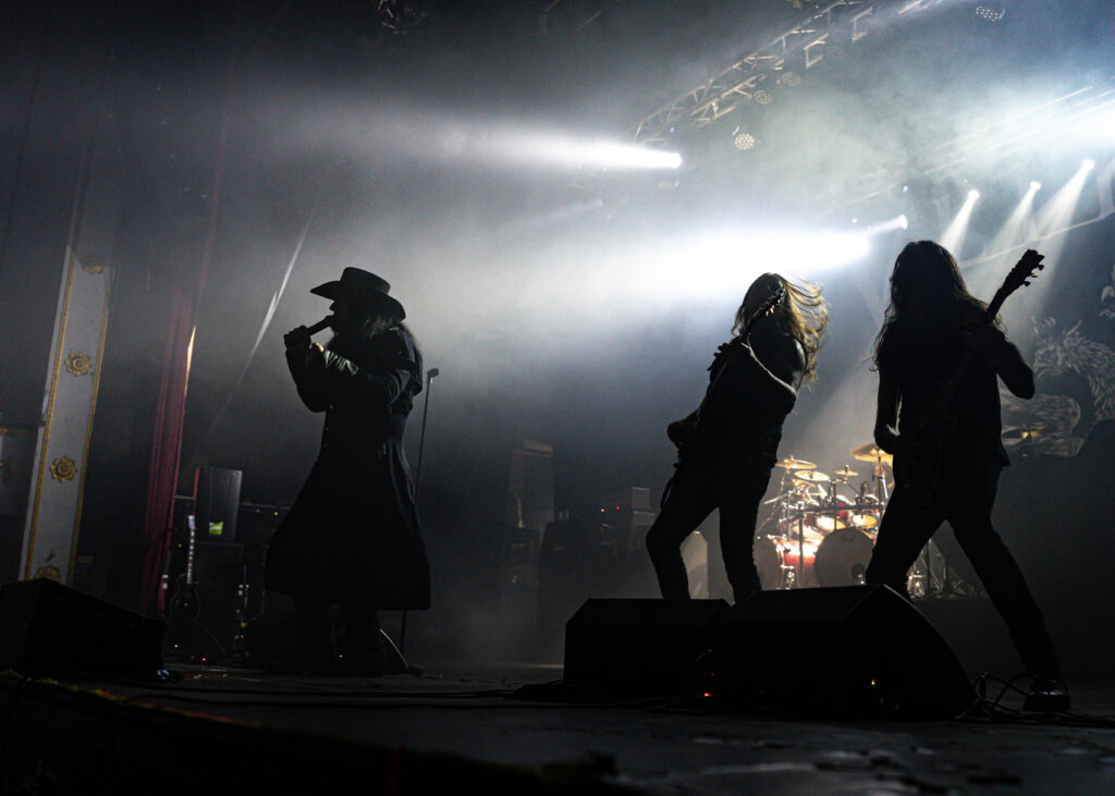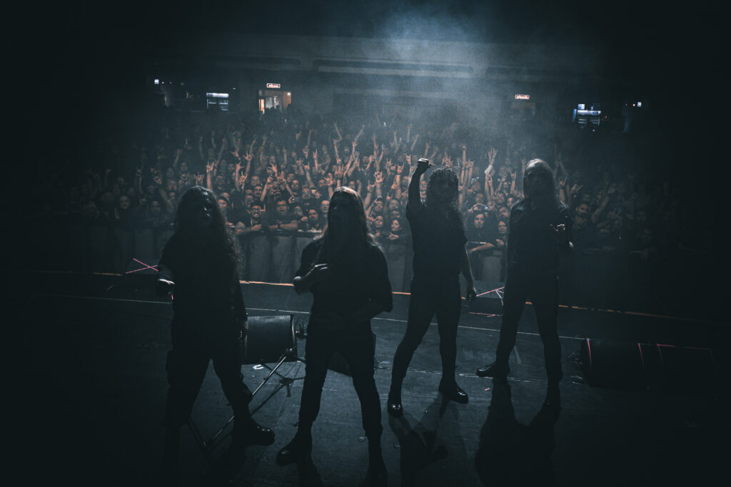 Tras otro breve descanso, a las 21:00 hrs llegó el debut chileno de Vltimas, uno de los actos más esperados de la jornada. La banda formada por David Vincent (ex-Morbid Angel), Rune “Blasphemer” Eriksen (ex-Mayhem) y Flo Mounier (Cryptopsy), acompañados por el bajista neerlandés Ype TVS (ex-Dodecahedron) y el guitarrista portugués João Duarte (Corpus Christii), presentó un set oscuro y envolvente que mostró el carácter único de la agrupación. El show se centró principalmente en su segundo disco, “Epic” (2023), el más melódico de la noche, cercano al estilo de Hate. La banda supo combinar los riffs densos y cargados de black metal de Blasphemer, la precisión técnica y agresiva batería de Flo, y la voz inconfundible de Vincent. Sin recurrir a covers de sus proyectos anteriores, Vltimas reafirmó su identidad con canciones como “Epic”, “Mephisto Manifesto”, “Scorcher” y “Miserere”, que ofrecieron un set atmosférico, experimental y poderoso. El Teatro Cariola se rindió ante este trío de leyendas, que dejó una huella imborrable en el festival.
